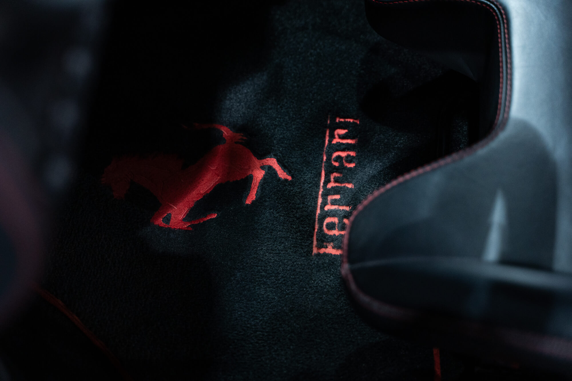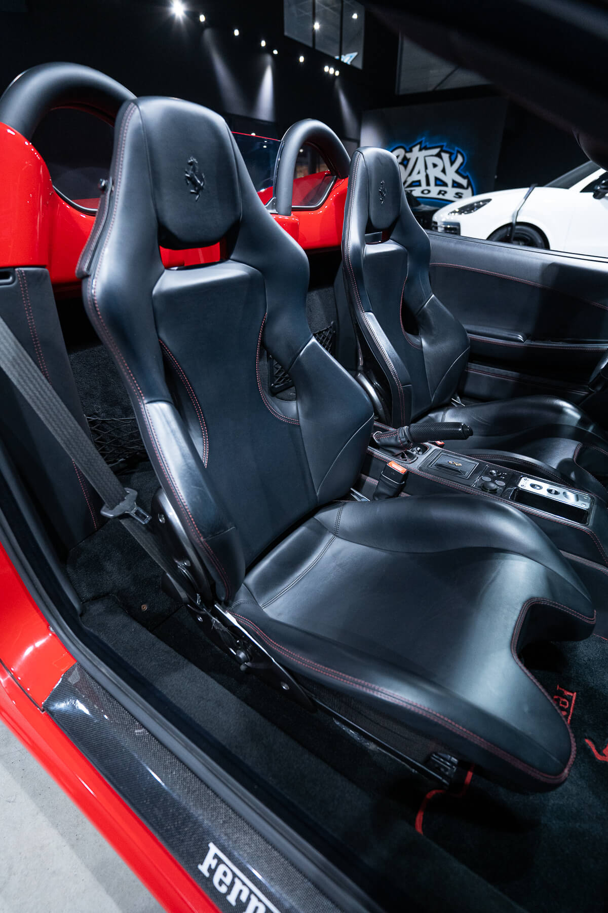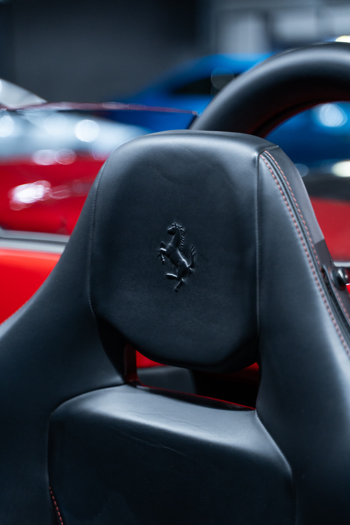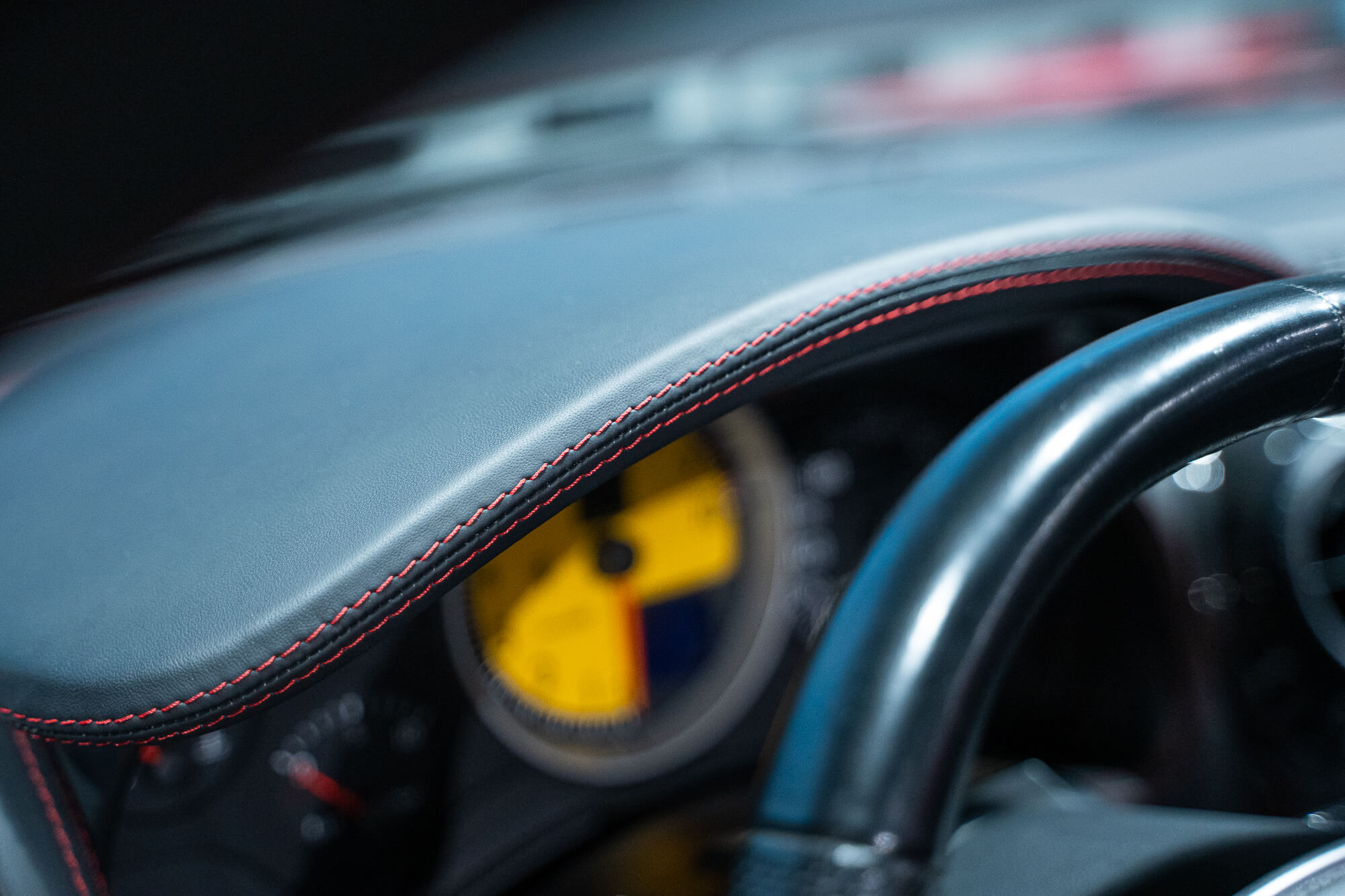 - Cuir étendu avec surpiqures rouges